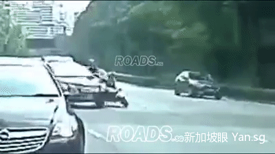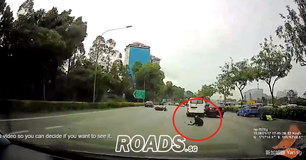 新加坡超惊悚车祸,摩托车手被撞飞后,遭货车碾过!