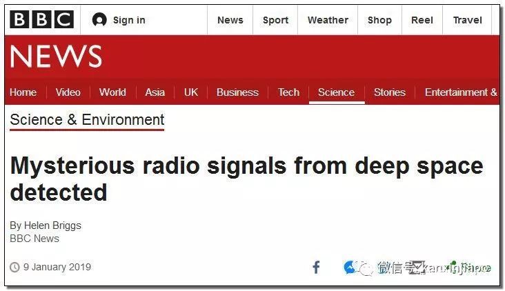 最先爆出这个消息的是BBC,用了“来自外太空深处的神秘电波”的标题,立刻引爆了全球社交平台的热搜榜。