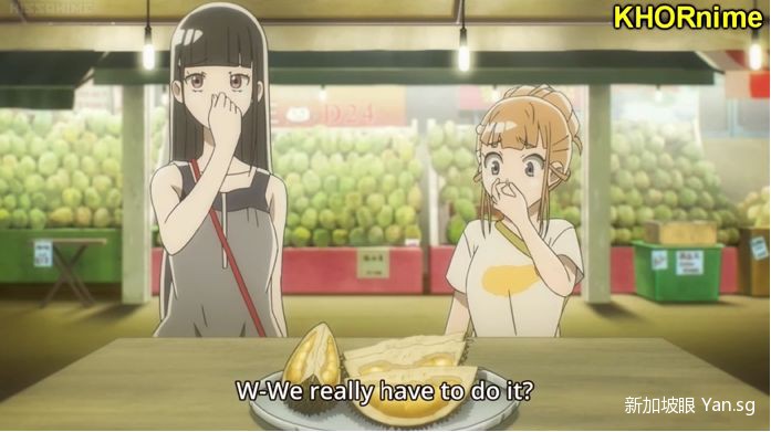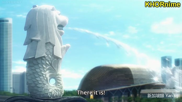 动漫的第六集《欢迎观赏榴莲秀》中出现了长达4分多钟,专门说新加坡的片段: