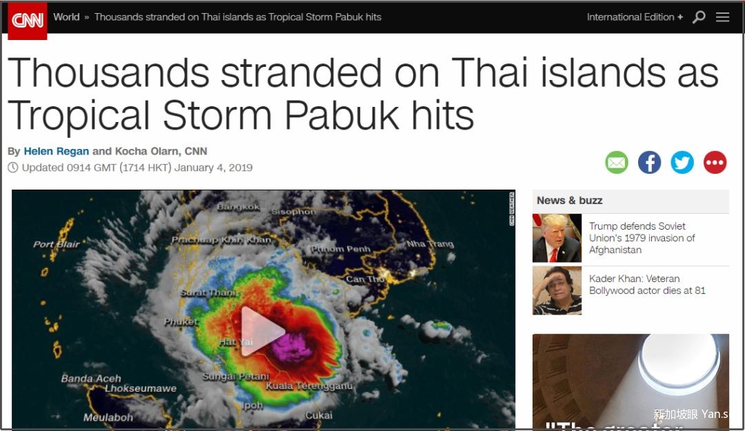 台风“帕布”今天(1月4日)登陆泰国,风力增强到12级,预计将成为1962年热带风暴“哈里特”后破坏力最大的一场灾难。