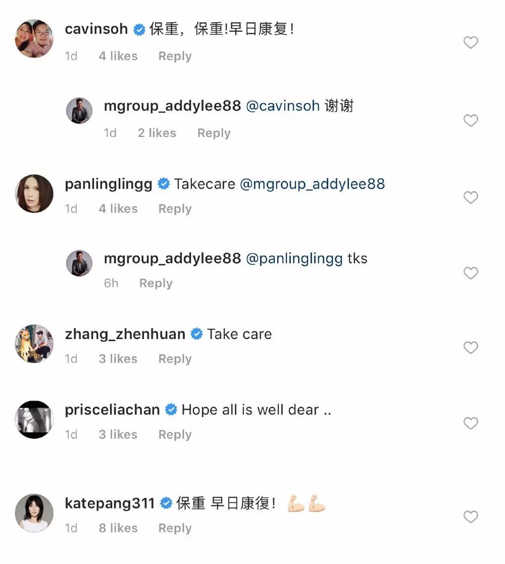 许多新加坡知名艺人也纷纷给李荣达留言表示慰问,并希望他早日康复。