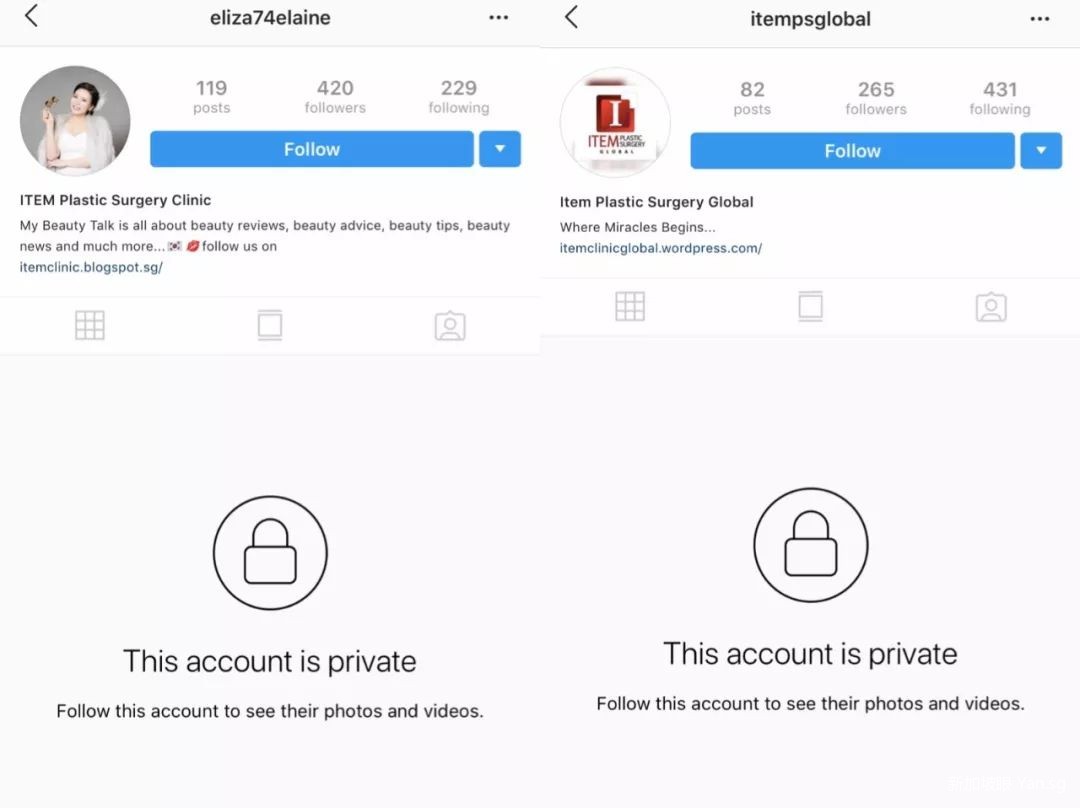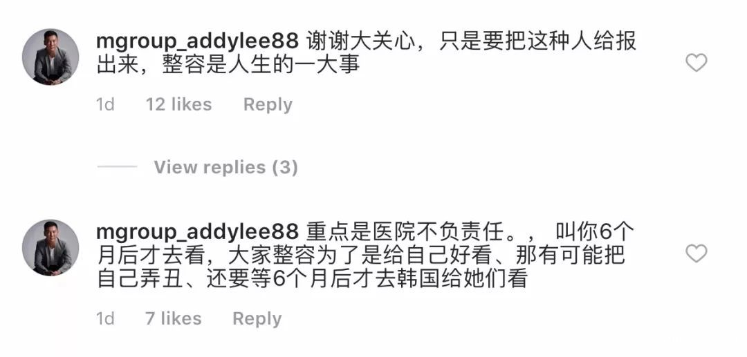 目前,李荣达点名痛斥的美容顾问以及整形医院的instagram账号已经被设为私密。