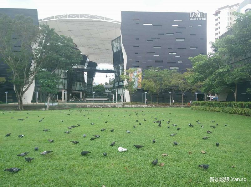 新加坡拉萨尔艺术学院(LASALLE)外面的大草坪上,除了下雨天以外,每天都会有上百只鸽子在此游荡觅食……..