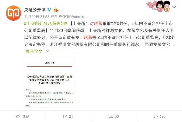 此前,赵薇和黄有龙操控股市被曝光,被证监会实施了五年禁止进入证券市场禁止令,并且给予处罚三十万元,并且赵薇旗下的公司直接负责人,在五年之内都不能够担任上市公司董事长、监事、还有高级管理人员。