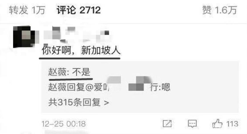 结果有网友评论:你好啊,新加坡人。本尊亲自下场回应:不是!目前这名网友已经删除了评论。