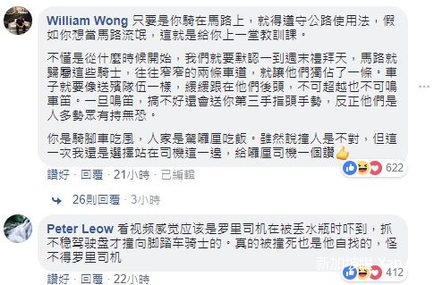 现场目击者证实,当时货车司机已经多番鸣笛提醒脚踏车骑士,但骑士置之不理,直到行驶遇到红灯,还停在货车前方。