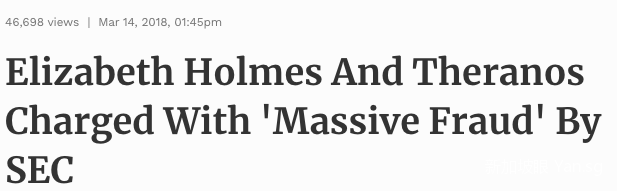 她叫伊丽莎白·福尔摩斯,她与自己所创办的Theranos公司,今年被美国证券交易委员会指控为“大规模欺诈”。