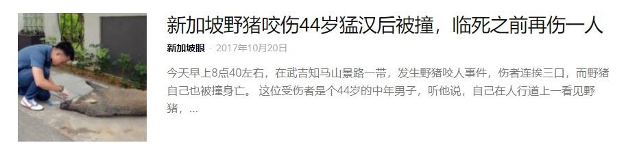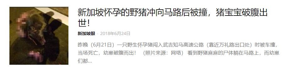 之前新加坡眼就报道过两起发生在武吉知马的野猪被撞事件。