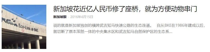 除此以外,新加坡还花费将近2000万新币为野生动物修建“串门通道”,避免野生动物在穿越高速公路时被车子撞到。