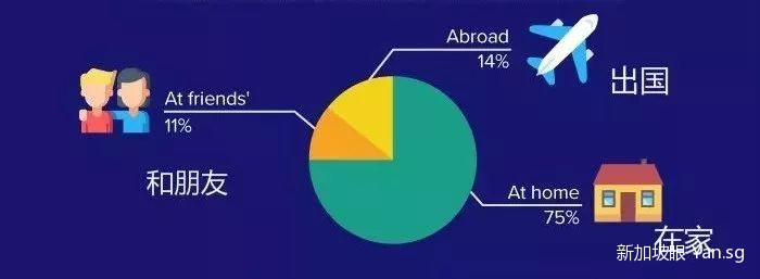 作为公休日,四分之三的新加坡人,选择在家当肥宅,和家人共度~还有14%的一小撮人出国度假,另外11%的人出门和朋友轰趴。