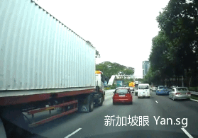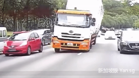 生死时速!新加坡大卡车集装箱侧翻险压小轿车