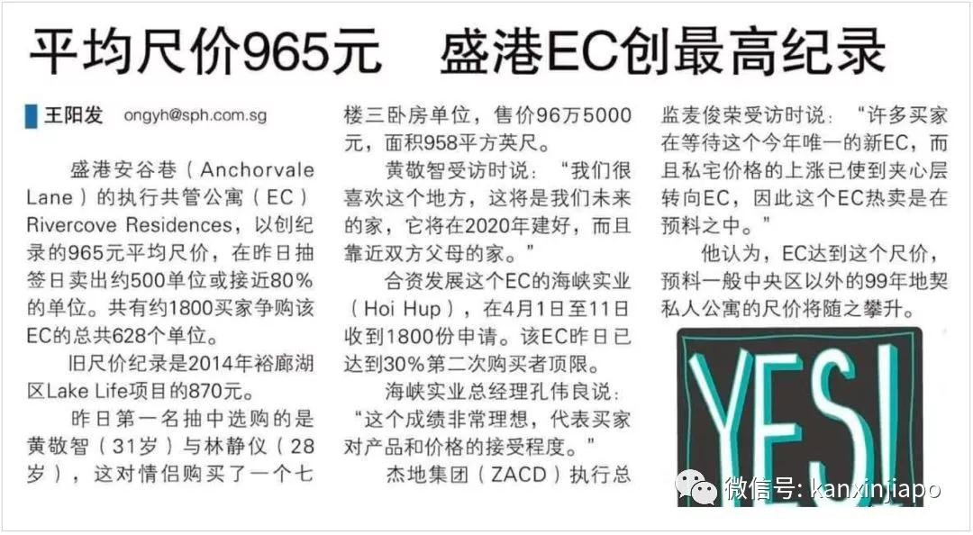 新加坡目前的房价若不是因为政府的强制调控,可能早就腾飞了。以大家熟知的EC为例,EC和组屋都算是政府的半福利房,现在EC的价格都已经大涨,公寓房价上涨是板上钉钉的大概率事件。