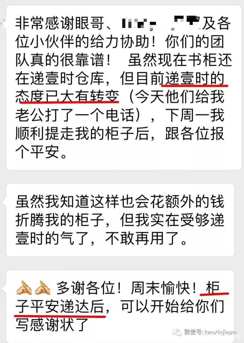 一周前,新加坡眼报道了罗女士海淘书柜时,被一家叫“递壹时”的集运公司坑了。昨天,罗女士告知,终于提到了自己的书柜!至此,这个书柜已经在递壹时的仓库里躺了一个多月。