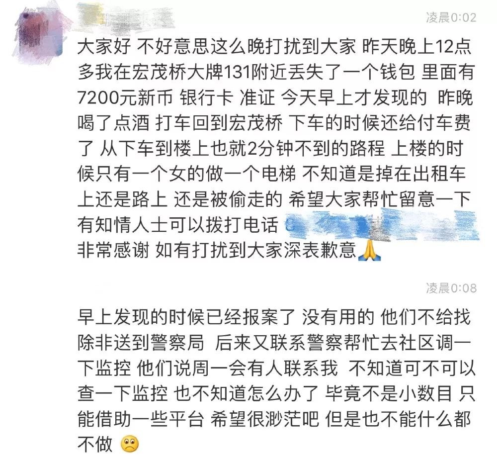 昨天(12月8日)晚12点,一位网友在宏茂桥大牌131号处丢失了一个钱包,里面装有7200新币现金、银行卡和他的准证。失主今早已经报警,但是尚未得到回复。