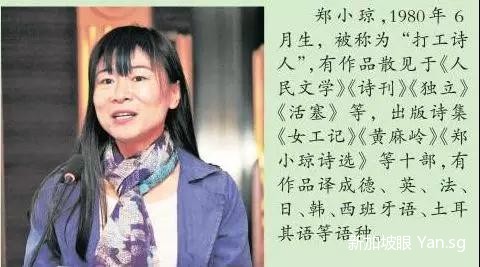 现在这位 “打工诗人”将来到新加坡,参加新加坡国际移民节,并为新加坡眼粉丝带来一场特别的见面会,交流“打工者与文学”的相关内容。郑小琼将借中国打工浪潮的背景,描述自己作为一个打工者的心路历程,以及自己与诗歌的关系。同时,她还将在讲座上分享自己未来的创作期许。现场的观众也有自由发言时间,与她对话。