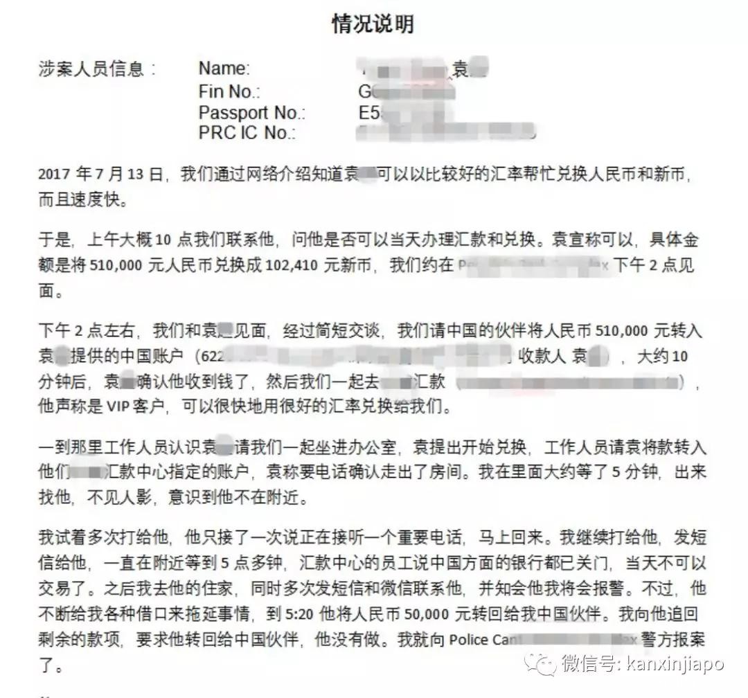 今年初,新加坡眼报道过,一位网友也是通过微信联系陌生人换钱遭骗,金额高达51万人民币。