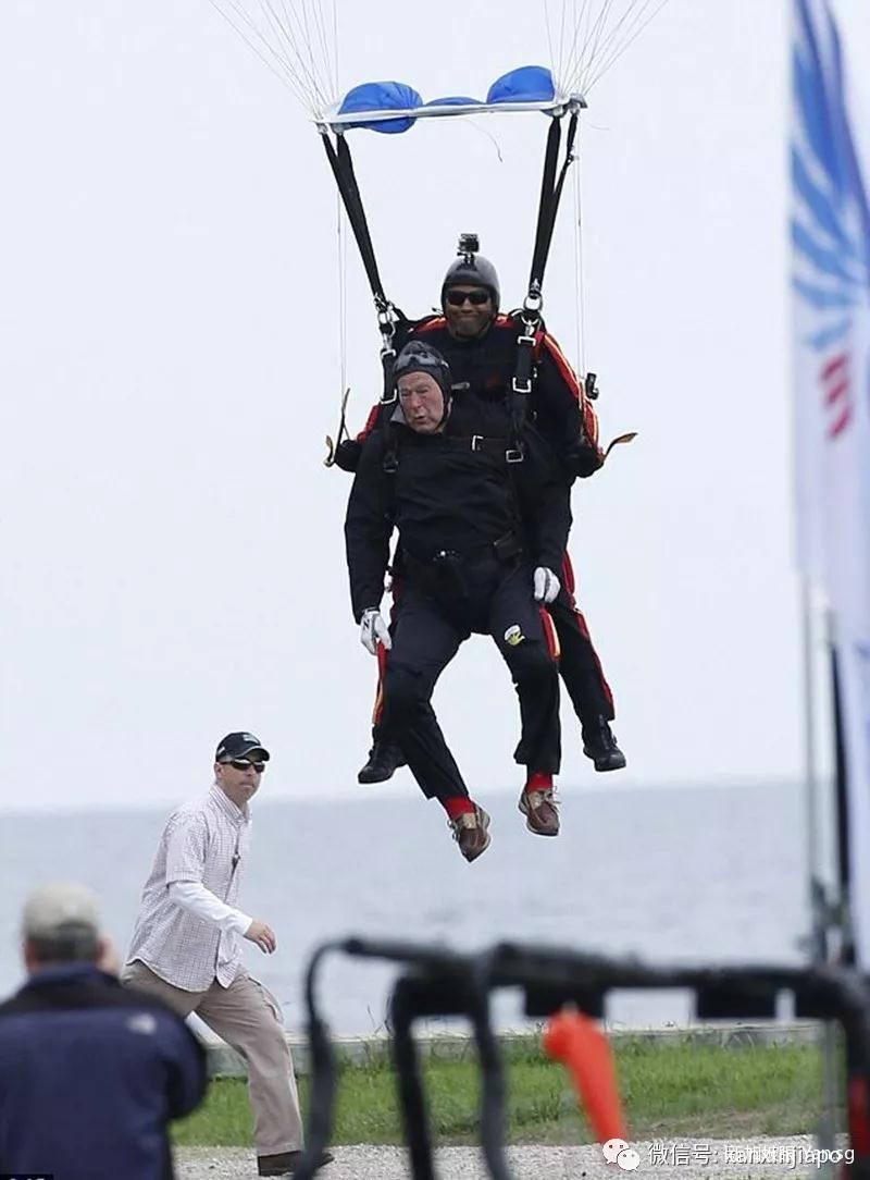 而最近的一次跳伞就是在他90岁生日那天。即使当时老布什已经行走不便,出行必须靠轮椅了,但是这并没有阻碍他想要跳伞的决心。在美国陆军“金骑士”跳伞队员的帮助下,老布什跃出机舱,采取双人跳伞的方式平安着陆。