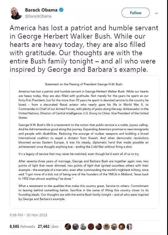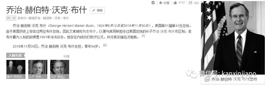 11月30日晚,美国前总统乔治·赫伯特·沃克·布什(老布什)去世,享年94岁,又一位时代变迁的见证者走了……