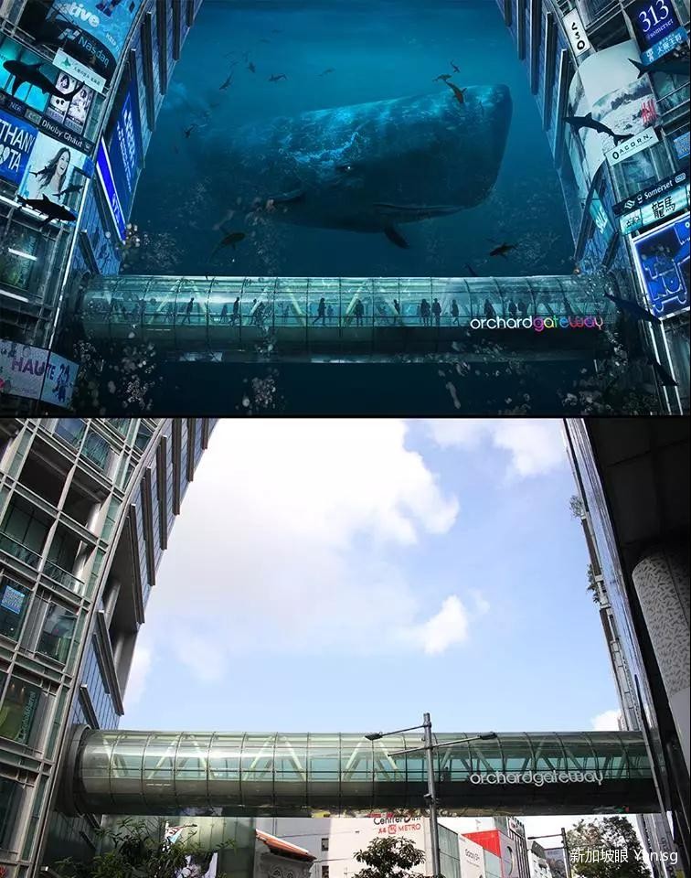 乌节路被淹成了“海洋世界”。大蓝鲸慢悠悠地游过…….