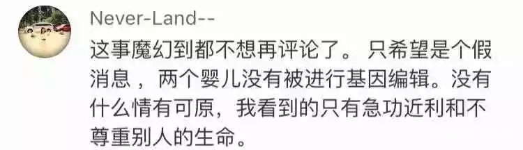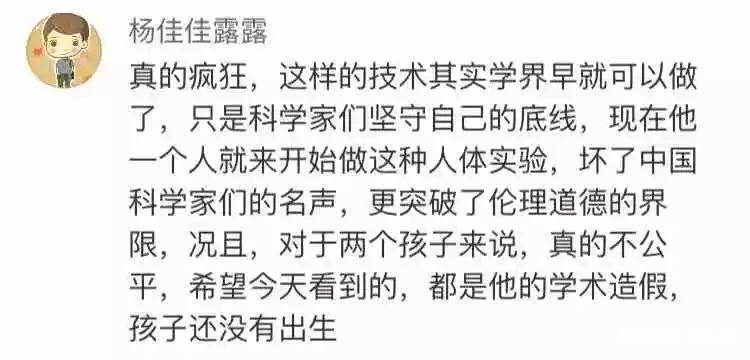比如,改变还未出生的孩子的基因,无异于把她当作了小白鼠做实验。基因涉及到的问题太久远,孩子要长大要结婚生子,这个被改变的基因流入人类基因库会产生怎样的后果?甚至有人将其比喻成“潘多拉的魔盒被打开了”……