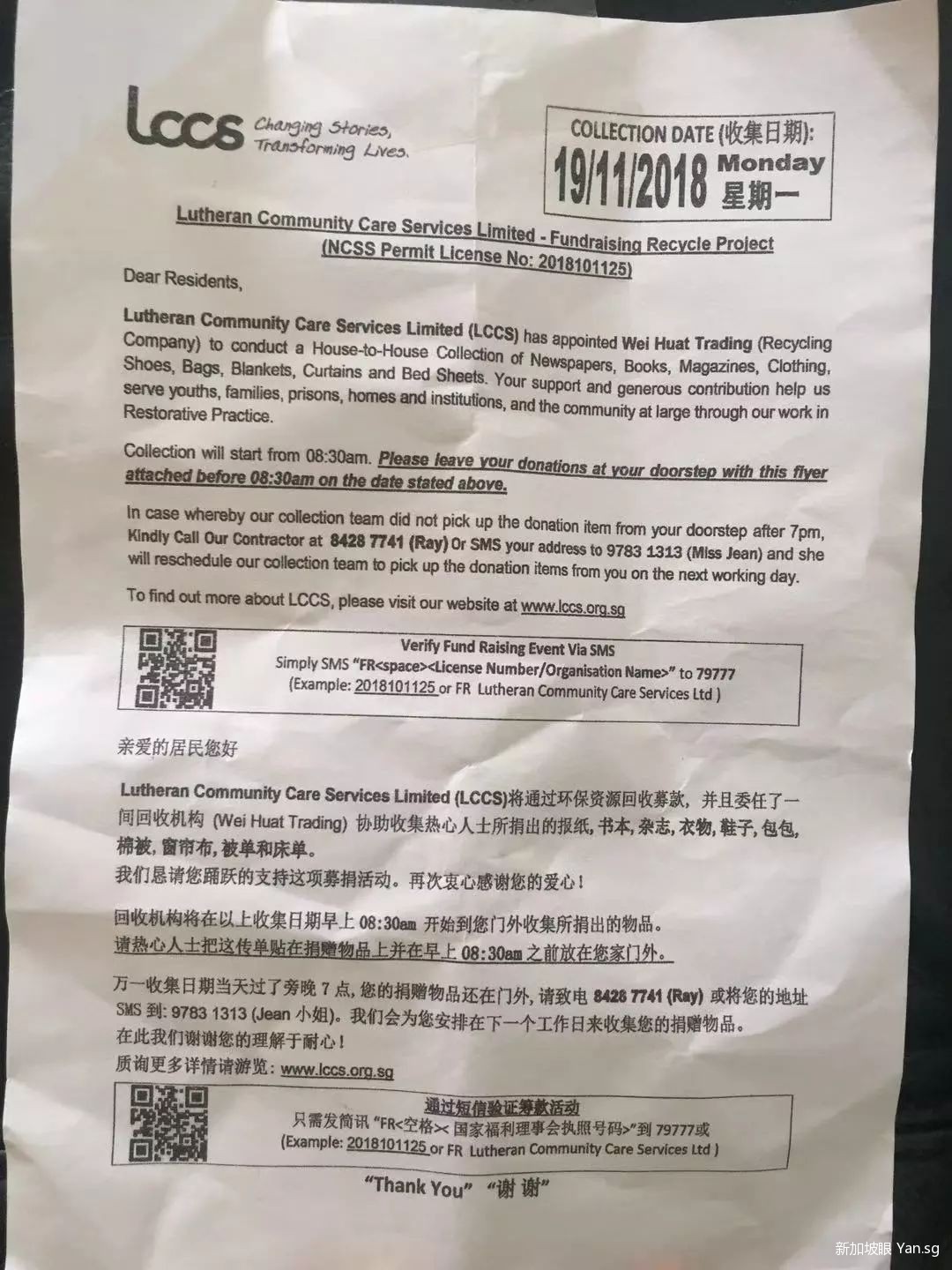 在新加坡,这些“弃之可惜”的东西是可以捐出来的。组屋里,每个月都会组织回收,或许这是避免大家“囤物症”的好方法。