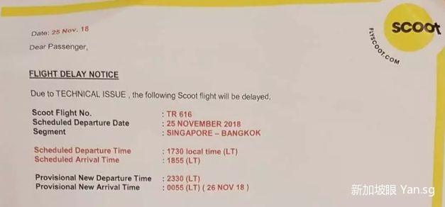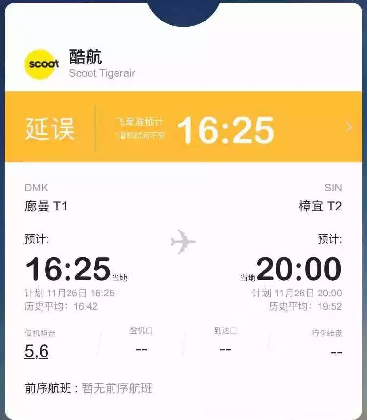 也就是说,本该昨晚8点就到达新加坡的酷航TR869,预计要到今晚10点10分才能从泰国起飞。