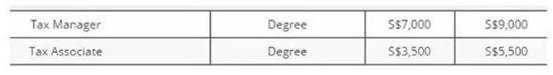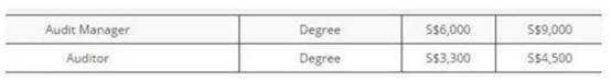 2018年会计相关从业人员薪水中位数调查数据,可以看到要求本科学历的岗位中位数普遍在5000新币/月以上,如果具有ACCA证书,薪水水平会更高一筹。