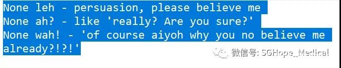下面再来看一位苏格兰小朋友对这段对话的解读——小朋友毕竟在新加坡待过两个月,对于新加坡英语有了不错的认识,他的解读看起来可就专业多了。