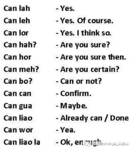新加坡英语(Singlish)多年演变下来,和动不动就长篇大论的英美英语相比,以其简洁高效表达语义著称,加上还融合吸收了一些福建话、马来语等表达方式的直译,往往让初到新加坡的人听不懂——不仅是从小学英语的我们,就连以英语为母语的西方人也经常表示听不懂。