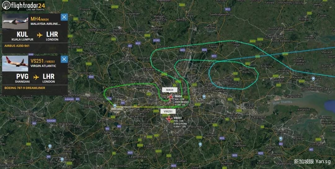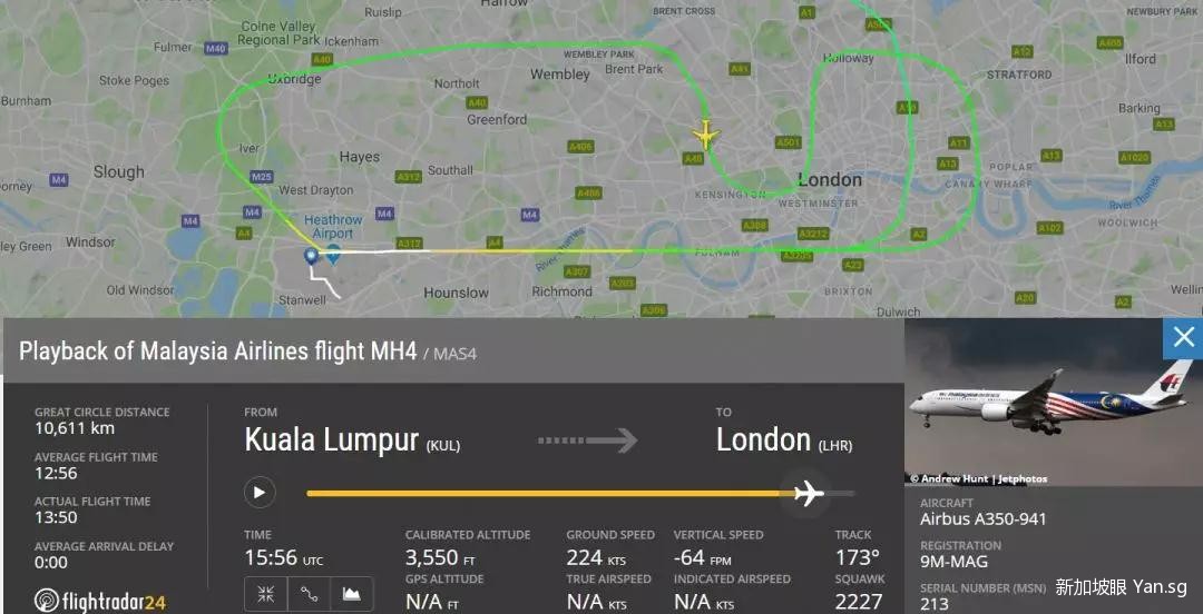 在当地时间16点45分左右,马航MH4正在接近伦敦希思罗机场朝西的跑道,准备降落。然而,不知为什么,接近27R跑道时,马航MH4竟然选择重新升空!