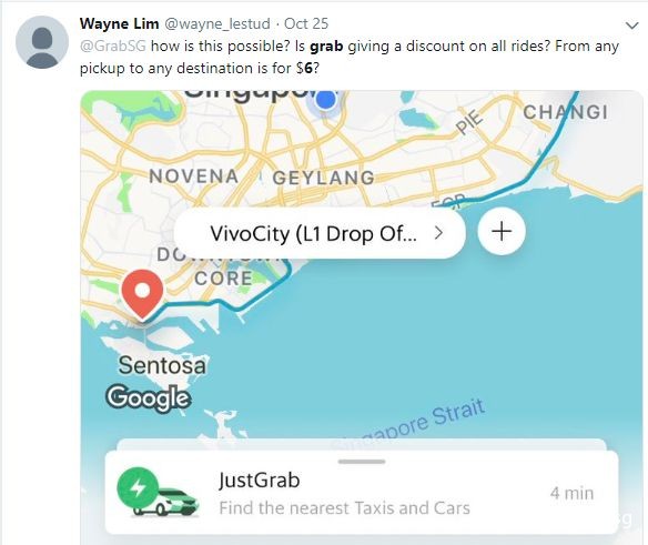 昨天(10月25日),Grab系统出现故障,不管走多远,车费都只要6新币!!