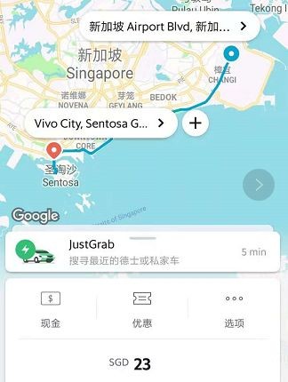 平时从樟宜机场打车到Vivo City,使用Just Grab需要23新币~