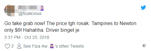 翻译:哇,快去打个Grab吧。从Tampines到Newton只花$6,哈哈哈哈……