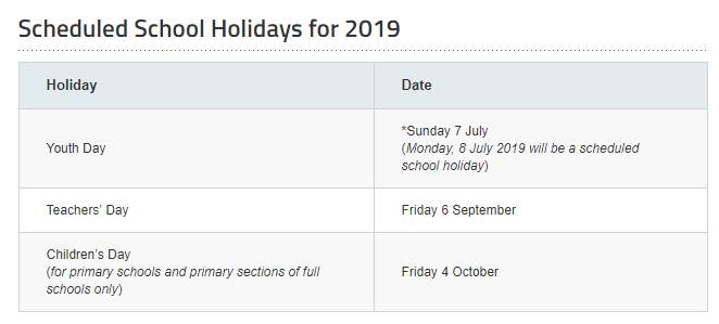 (数据来源:https://www.moe.gov.sg/education/school-terms-and-important-dates#scheduled-sch-hols-2019)