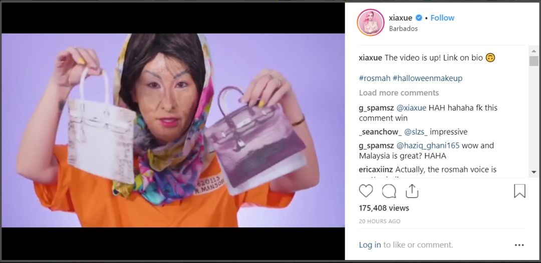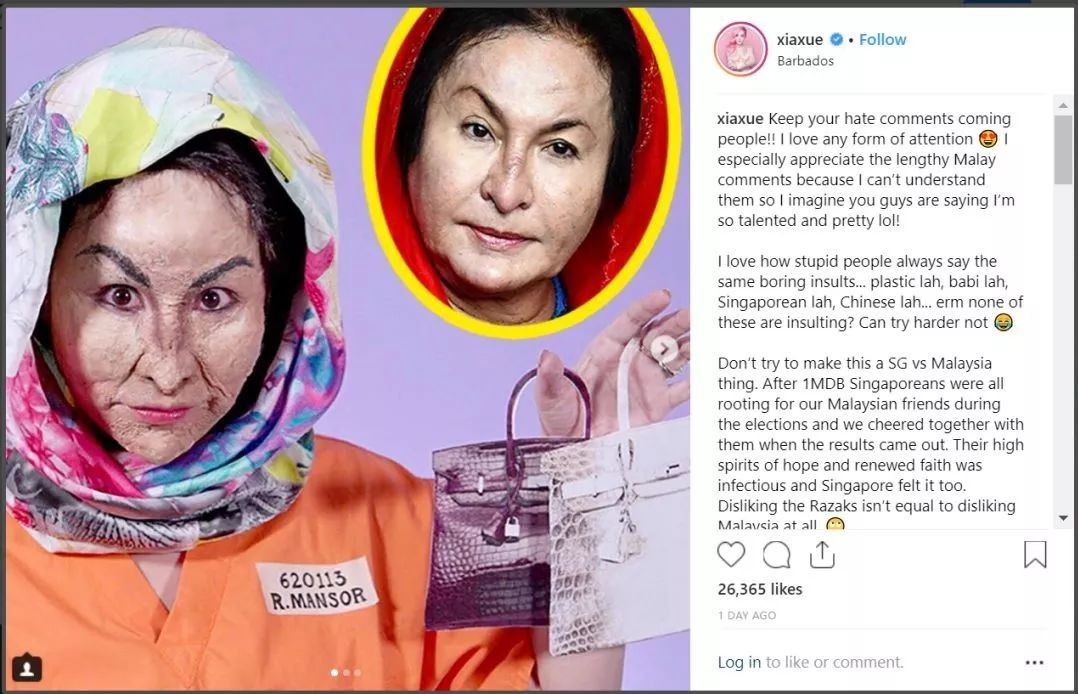 新加坡知名网红下雪,模仿马来西亚前首相夫人罗斯玛,结果遭到死亡恐吓!有人甚至扬言要泼硫酸毁她容!