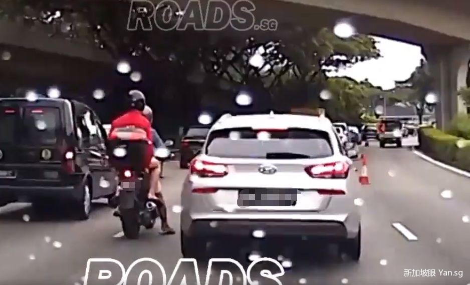 太疯狂!摩托车与轿车在新加坡高速路上“挤兑”
