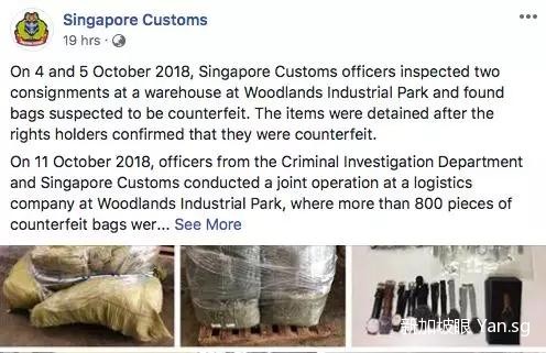 10月4日和5日,新加坡海关检查送往某物流公司的两批货物时,发现包裹中有大量疑似仿冒大牌手提包。在和品牌方沟通后,确认这批货物是非法假冒、买卖的。