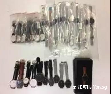 随后,警方继续按图索骥,终于逮到了大鱼。10月15日,在盛港康埔桦街(Compassvale Street)抓捕了嫌疑人,并且在他的住所发现了大量仿冒的手提袋、背包和手表。这些货物总价值大约为52万新币!