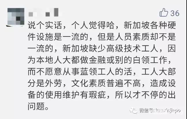 还有的网友将新加坡断网、断电、坏地铁的原因进行了大总结~认为新加坡缺少高级技术工人,使用维护方面有不少瑕疵。