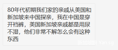 话说回来,看到这熟悉的裤子,不知道大家有没有一种来到中国的感觉~在中国开裆裤还是非常普遍的,于是这位来自中国的阿嬷也把这种穿法带到了新加坡:“我们在中国都是让小孩穿这种裤子走动的,等他长大了就不会让他这样子穿了。”