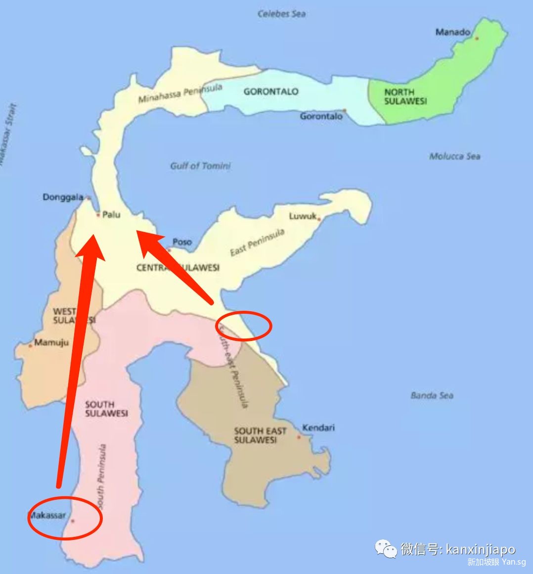 苏拉威西岛上有六个省,发生海啸最严重的地方,位于中苏拉威西省。离灾区比较近的地区是Bahodopi,由于地震过后路况不好,救援人员连夜开车13小时,才从Bahodopi赶到现场。