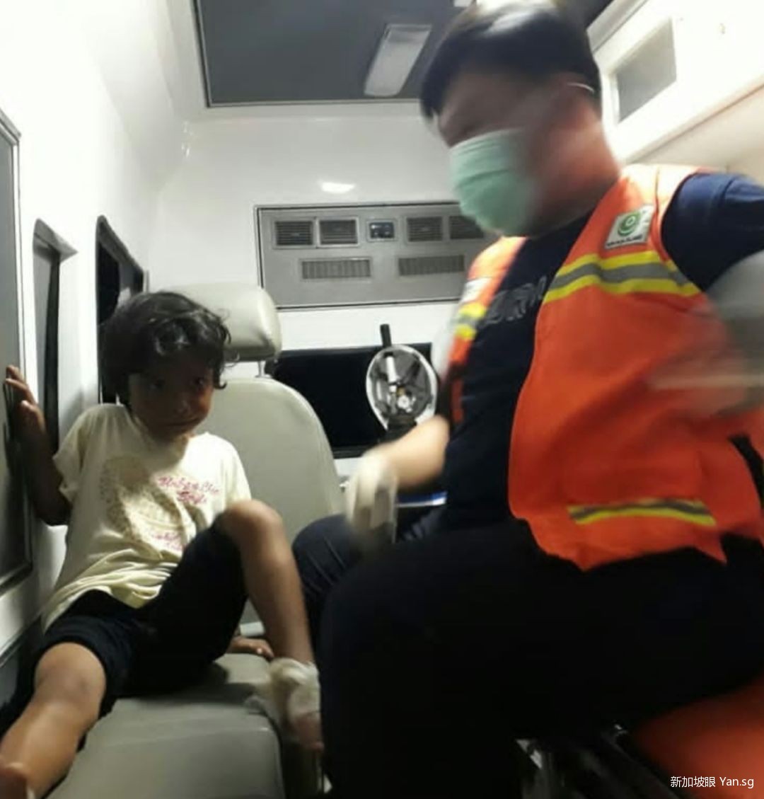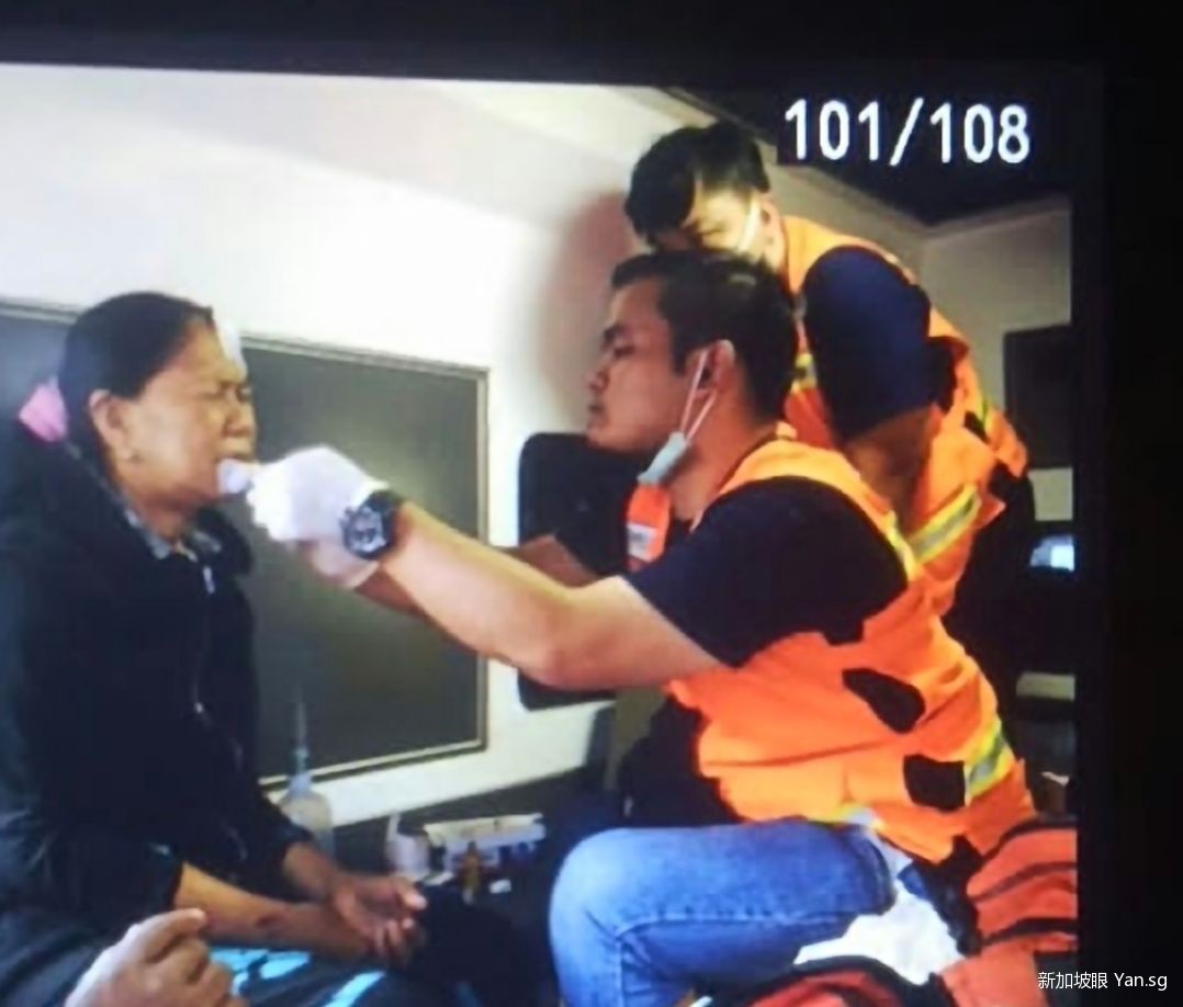 一名印尼女性的唇部、额头、手腕多处受伤,急需止血和消毒。