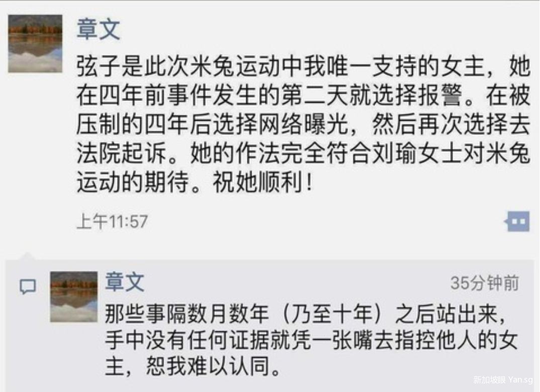 目前,章文依旧活跃在媒体圈,就在一周前,他还对女性维权的“ME TOO”活动做出了声援。