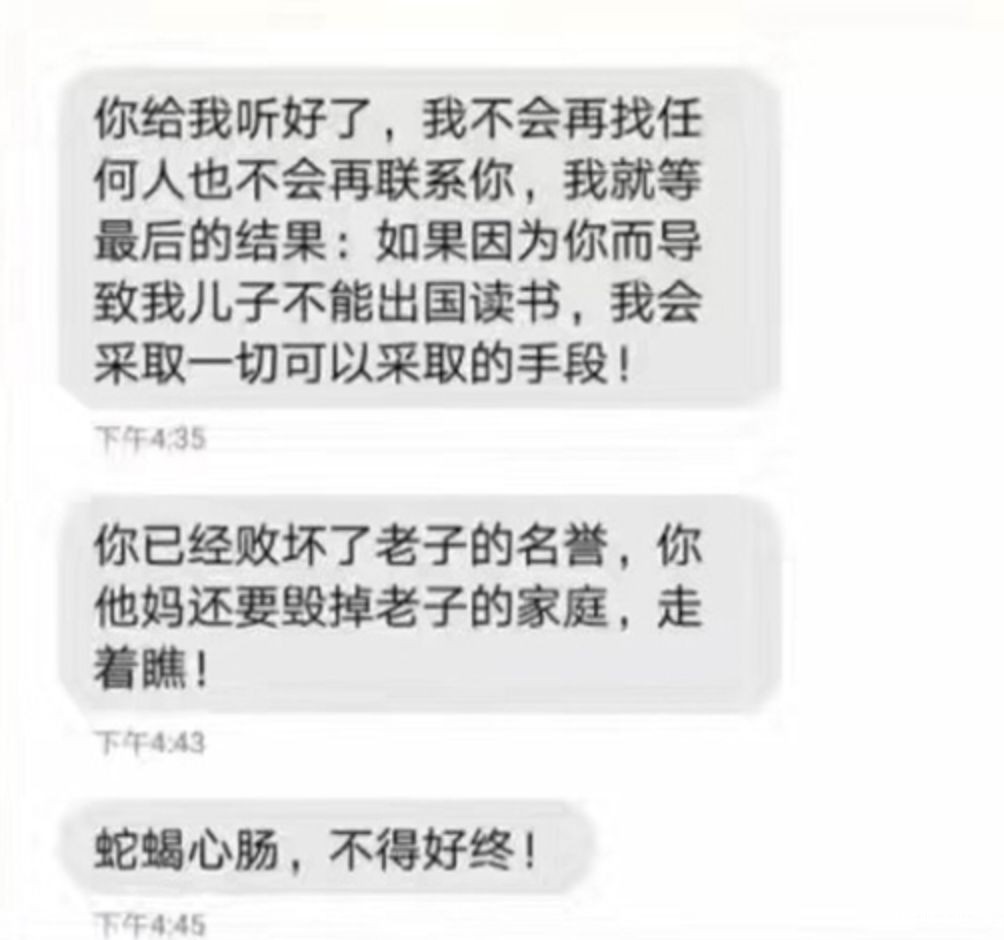 一石激起千层浪后,章文先是对举报他的女性发信息“威胁”。