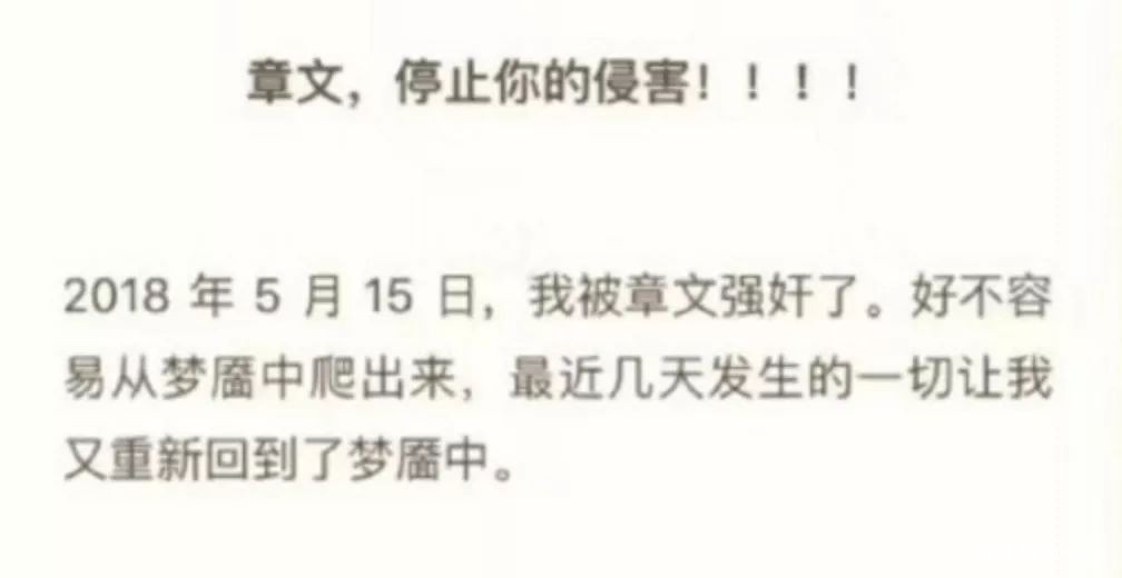 对比中国那起轰轰烈烈反性骚扰运动的导火线,南方报系资深媒体人章文被多名女性指控性侵!网友小精灵发表长文: