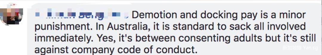 翻译:降级和减薪只是一种轻微的处罚。在澳大利亚,一般情况是要立即解雇所有参与者。是的,这是成年人之间的事情,但是它依旧违反了公司的行为守则。