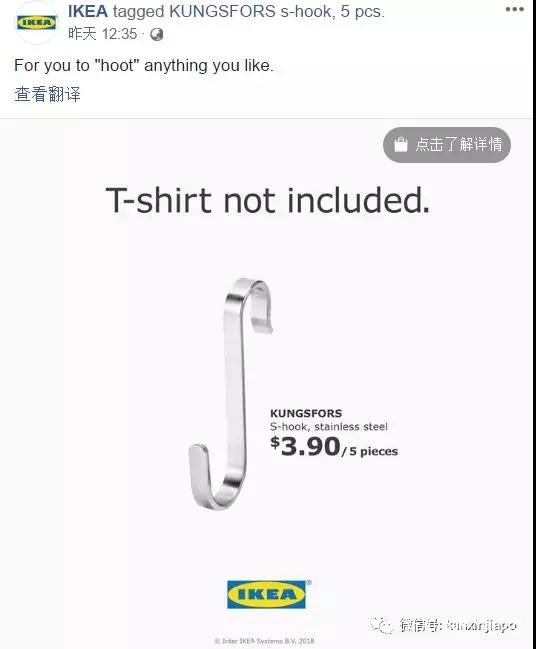 看见S Hook姐和她的挂钩火了,宜家也没有放过这次机会。昨天,他便在自己的脸书上贴出了S字吊钩KUNGFORS的广告。