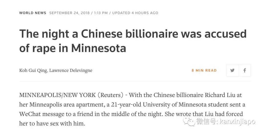 路透社披露刘强东性侵案详情:女主微信内容被曝光!