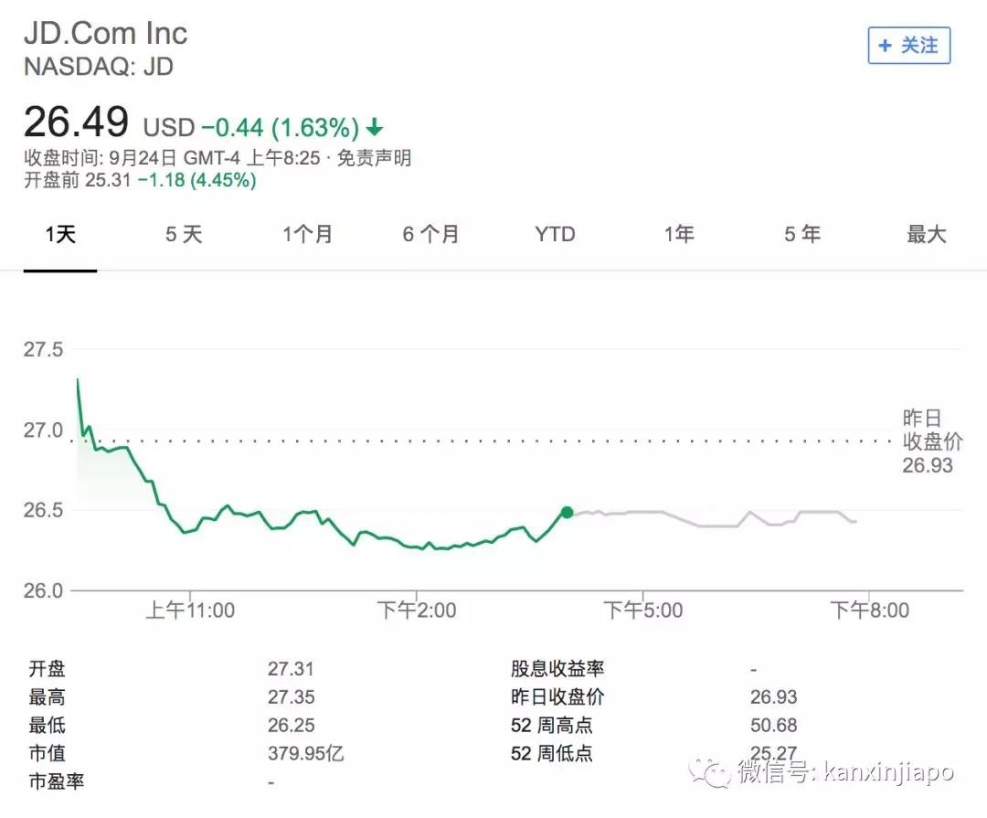 京东的股价受影响下跌…….