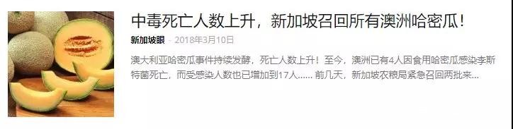 今年3月,新加坡就爆发了,一场因水果引起的多人死亡案。有很多食客,因为食用了澳洲哈密瓜,而感染李斯特菌死亡。